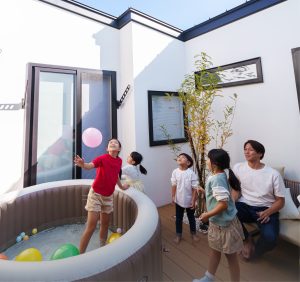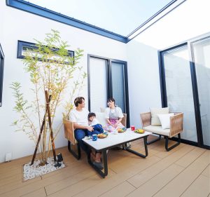 家の中心に中庭を設けることで、光と風があふれる開放的な空間を実現しました。